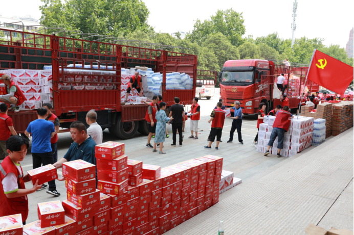 市总机关的干部职工这些天一直是装卸搬运爱心物资、下沉社区清淤保洁的主力。他们有的家里地下室依然被雨水泡着,有的家里没电没水孩子没有照看,有的还是住院病号,但机关干部职工没人退缩,没人喊累,物资来了抢着卸车,去慰问了忙着装车搬运,有空闲了赶快协调、联络。工会干部们说:“我们就是爱心的传递者,职工防汛救灾的保障服务员,爱心企业向企业和职工捐赠的物资中转到我们这里,我们千方百计、精准高效、一件不留送到防线救灾基层一线,让物资发挥最大效能,让爱心温暖职工心窝。”