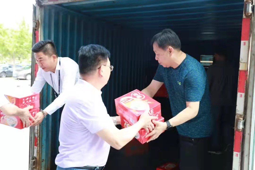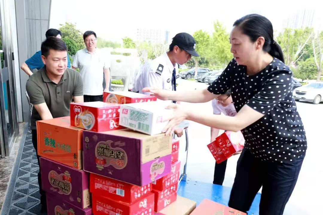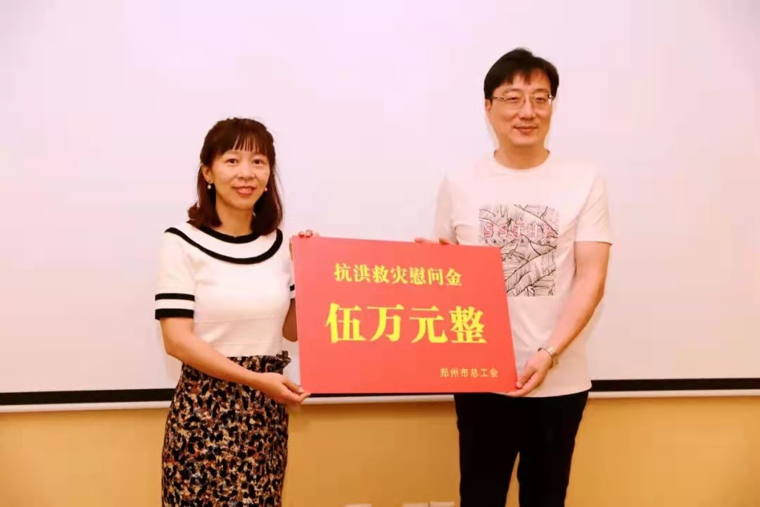 7月27日上午,郑州市一级巡视员,市总党组书记、主席赵新中带领市总工会党组其他成员来到郑州华南城,走访慰问在本次防汛救灾中冲锋在前的职工群众,为他们送上了方便面、火腿肠、八宝粥等慰问品和5万元慰问金。