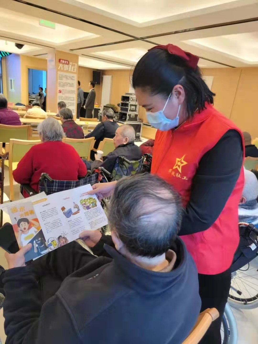 此外,考虑到老年人识骗防诈和抗风险能力较弱,极易成为犯罪分子实施欺诈的对象,节目编排特意增加了防范电信网络新型违法犯罪宣传,播放了基层职工演播的《全面反诈 你我同行》快板书视频,职工志愿者还为退休老职工们发放防诈骗宣传彩页页,通过宣传讲解、视频播放的方式,引导老职工们提高安全防范意识,守护好钱袋子。