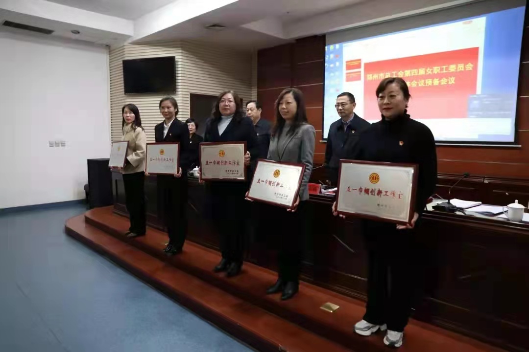会上,对郑州市“五一巾帼创新工作室”和“示范爱心托管班”进行授牌。