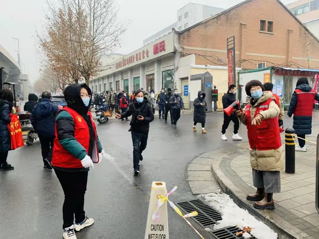 “您好,请带好口罩,保持一米距离”“请出示核酸检测二维码”……在一个个核酸检测现场,工会志愿者顶着风雪忙碌在各自的工作岗位上,不厌其烦的提示着前来的群众。很多排队居民对“红马甲”表达了钦佩和赞扬:“这么冷的天,我们排一会儿队就冻的直跺脚,志愿者和医护人员在工作岗位上这么辛苦,非常感谢他们总在疫情发生的第一时刻守护着我们。”