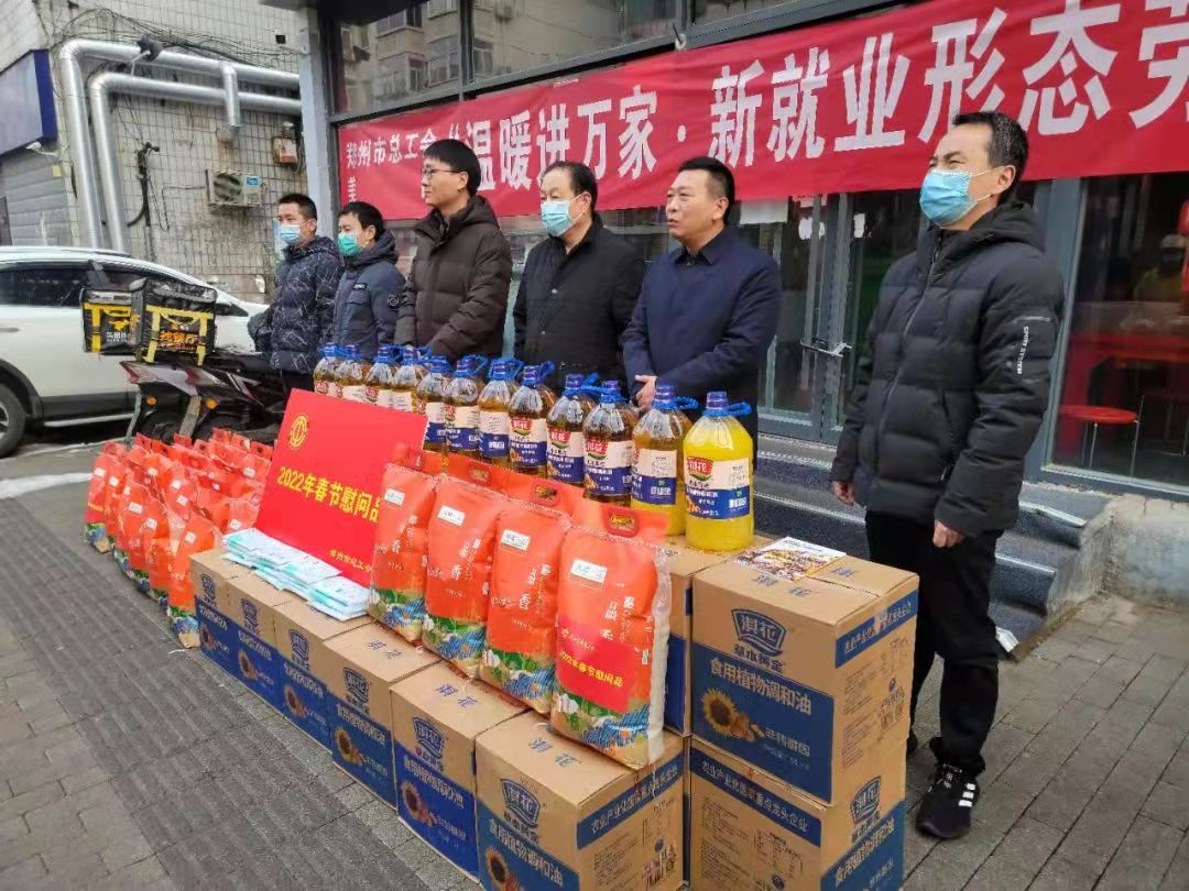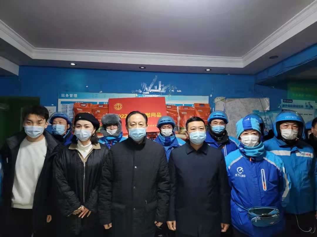 为深入贯彻落实党的十九届六中全会精神和党史学习教育“我为群众办实事”要求,充分发挥工会组织联系职工群众的桥梁纽带作用,1月25日,正值农历小年,郑州市总工会党组书记、主席赵新中,市总工会党组成员、副主席许振亚,市总工会办公室和基层工作部负责同志一行来到美团外卖和饿了么外卖的站点开展“新春送温暖”活动。