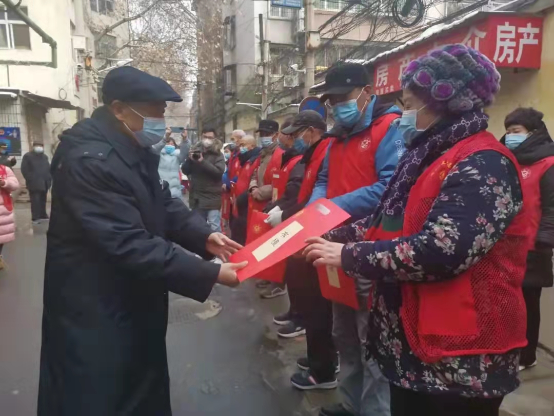 在新一轮疫情防控中,全市各级各类志愿服务组织和广大志愿者积极投身志愿服务行动,模范遵守疫情防控规定,开展疫情防控知识宣传,就近就便到社区提供服务,为切实维护人民群众生命健康安全和社会大局稳定贡献了力量。1月25日,郑州市二级巡视员裴保顺,郑州市志愿服务联合会会长何建生,郑州市总工会党组副书记赵志新等人组成的慰问组一行来到中原区桐柏路街道平安街社区、二七区五里堡街道河医社区对参与一线疫情防控志愿服务的志愿者进行慰问。