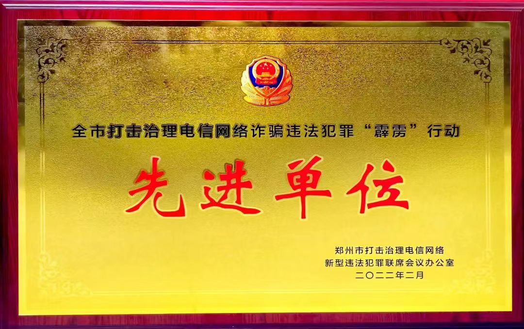 3月24日,全市召开打击治理电信网络新型违法犯罪“霹雳”行动总结表彰暨2022年第一次反诈联席会议,郑州市总工会荣获全市打击治理电信网络新型诈骗犯罪“霹雳”行动先进单位荣誉称号。