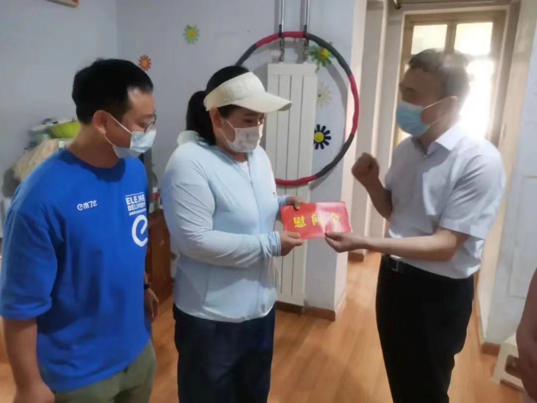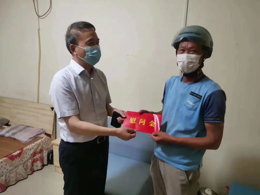 6月16日上午,郑州市总工会党组成员、副主席张建涛一行在饿了么公司工会主席杜梦园等人的陪同下先后到外卖送餐行业困难职工李清保和刘英的家中进行慰问,并分别为他们送去了落地扇、纯牛奶等慰问品和1000元慰问金。