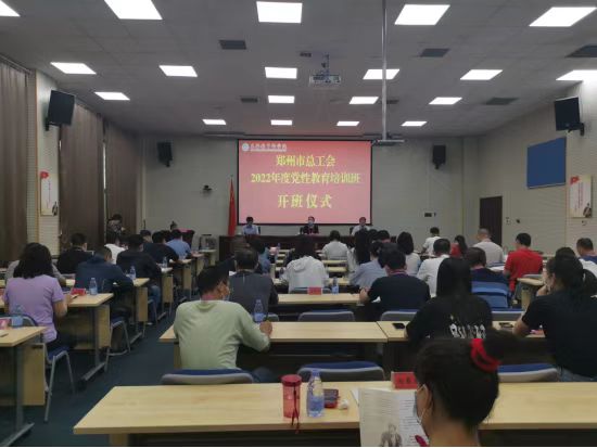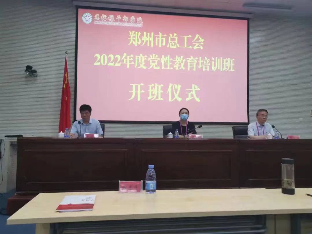 6月20日下午,郑州市总工会2022年度党性教育培训班在焦裕禄干部学院举行开班仪式,郑州市总工会党组副书记、常务副主席王玉红,焦裕禄干部学院副院长张连民,郑州市总工会党组成员、副主席张建涛,党组成员、女职工委员会主任靳荣欣,以及市总工会机关、产业工会、直属事业单位第一期培训班的50余名学员参加了开班仪式。