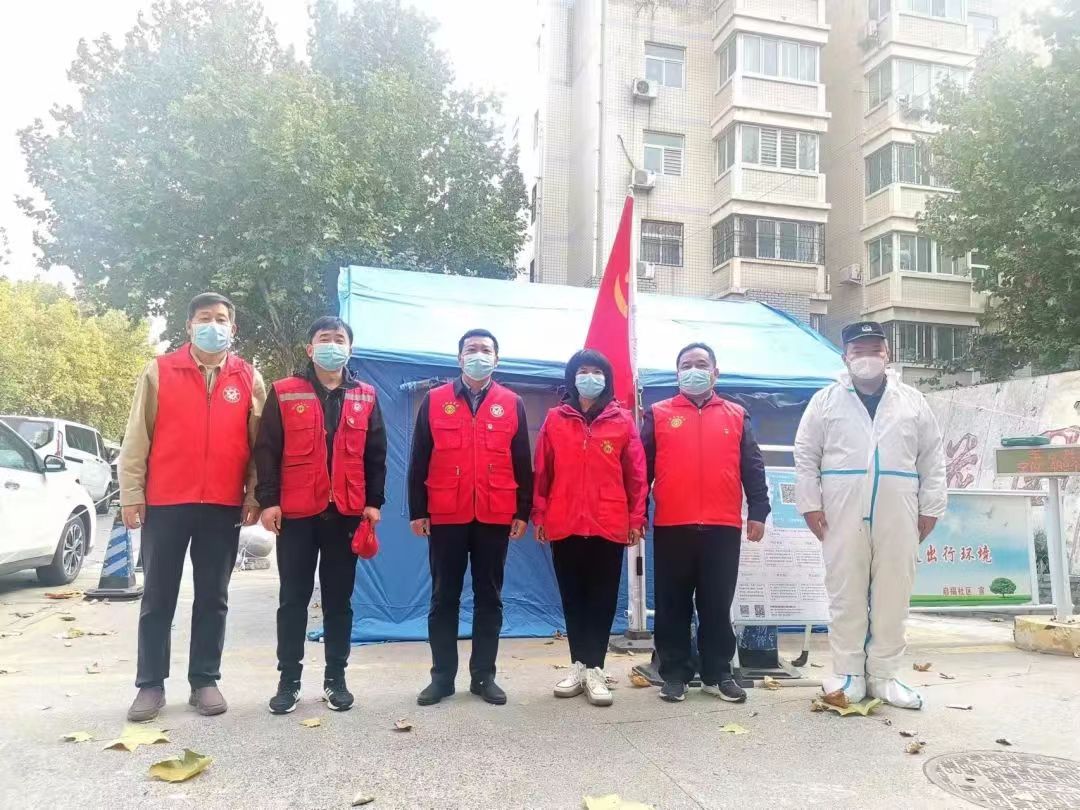 10月27日以来,市总工会积极响应市委市政府号召,认真落实疫情防控工作部署要求,把学习贯彻党的二十大精神落实到打赢疫情防控阻击战的具体行动中,组织党员干部迅速集结,下沉社区共筑疫情防控坚固防线,工作中坚持党建引领,充分发挥党组织的战斗堡垒和党员先锋模范作用,让党旗在疫情防控一线高高飘扬。下沉社区当天,14名党员在疫情防控一线成立了两个临时党支部,市总工会副主席许振亚、二级调研员靳荣欣分别担任临时党支部书记。全体党员披挂“大白服”,身着“志愿红”,在支部书记的带领组织下,或参加信息采集、或维持秩序、或门岗值守、或运输物资,处处展现共产党员“关键时刻能冲得上去、危难时刻能豁得出来”的过硬作风和奋斗本色。