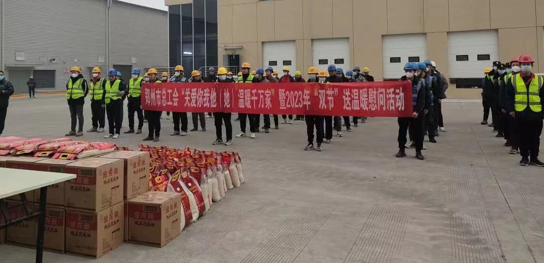 为深入贯彻落实党的二十大会议精神,认真做好春节期间重点项目施工一线建设者生活保障工作,1月10日到13日,市总工会二级调研员靳荣欣、市重点项目建设中心副主任侯哲峰一行来到郑州市重点项目施工一线,开展“关爱你我他(她)·温暖千万家”暨2023年“双节”送温暖慰问活动,为寒冬坚守岗位的建设者们送去慰问物资及新春祝福。