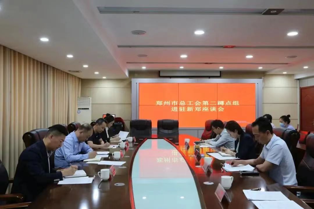 蹲点组首先来到新郑市教育园区(龙湖镇)政府召开蹲点工作座谈会,会上,刘俊亭介绍了新郑工会工作情况,张亿帆就教育园区(龙湖镇)工会联合会工作开展情况作了汇报,郑州市总工会基层工作部部长樊亚涛就蹲点工作相关精神进行了传达。