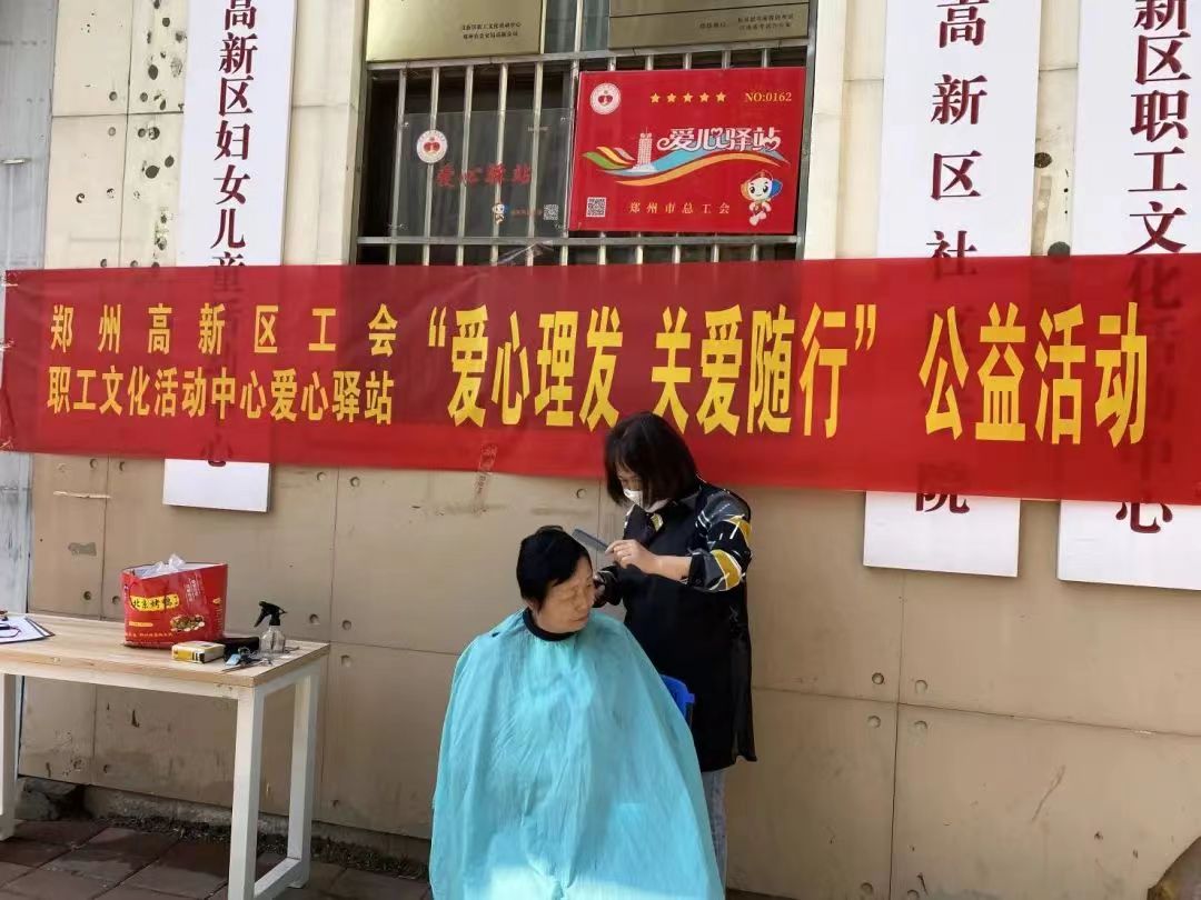 5月23日,郑州市总工会组织的爱心义剪活动来到高新区西区中医院爱心驿站、乐恩教育爱心驿站等5家户外劳动者爱心驿站,为奔波在工作一线的户外劳动者免费理发。前来理发的环卫工人、保安、快递小哥、网约车司机等纷纷为活动点赞,感谢工会为他们提供的贴心服务,点赞“娘家人”从一件件小事出发,为职工群众办实事、解民忧。