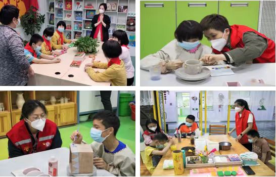 市总工会志愿者分为5组,分别来到音乐教室、手工室、美术室、烘培坊、陶艺坊与孩子们进行了互动,和他们一起做游戏、唱儿歌、做手工、烤面包等。刚开始孩子们对工会志愿者还比较陌生,一轮游戏过后,大家逐渐熟悉起来,通过充满爱的语言交流和肢体接触,让这些孩子们感受到了温情,脸上洋溢着天真的笑容。随后,大家一起唱歌,歌声给孩子们带去了欢乐,消除了隔阂,看到小朋友们愉快的笑容,志愿者们感到非常欣慰。