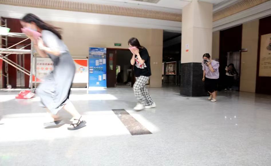 随后,活动组织机关干部职工进行了消防演练,大家按照刘顺齐的指引,模拟火灾情况下,湿毛巾捂住口鼻、弯腰沿着安全通道有序撤离到空地。演练过程中,全体人员严肃认真、快速响应,现场指挥得当,协同配合流畅,圆满完成演练任务,达到了预期效果。