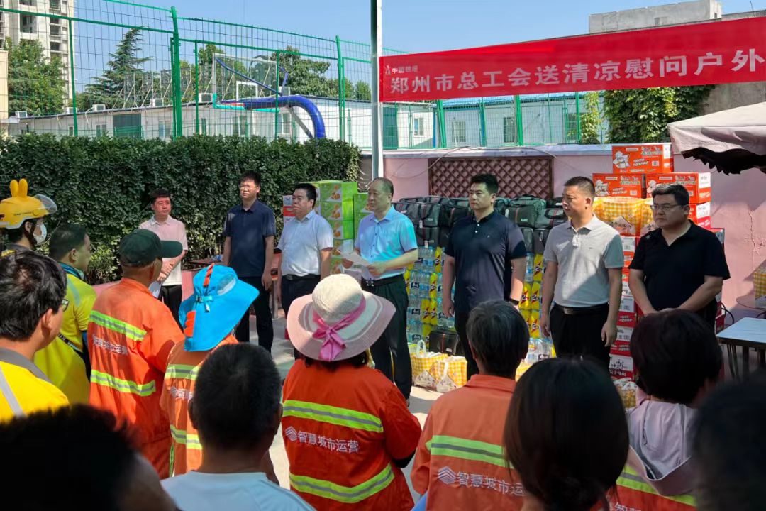 7月17日上午,郑州市总工会党组成员、副主席齐智慧带领市总工会保障工作部负责同志一行到河南云充新能源科技有限公司户外劳动者爱心驿站开展“送清凉”慰问户外劳动者活动。市总工会购置了矿泉水、方便面、菊花、白糖、仁丹等防暑降温物品,现场发放给了外卖骑手、货车司机、环卫工等户外劳动者。