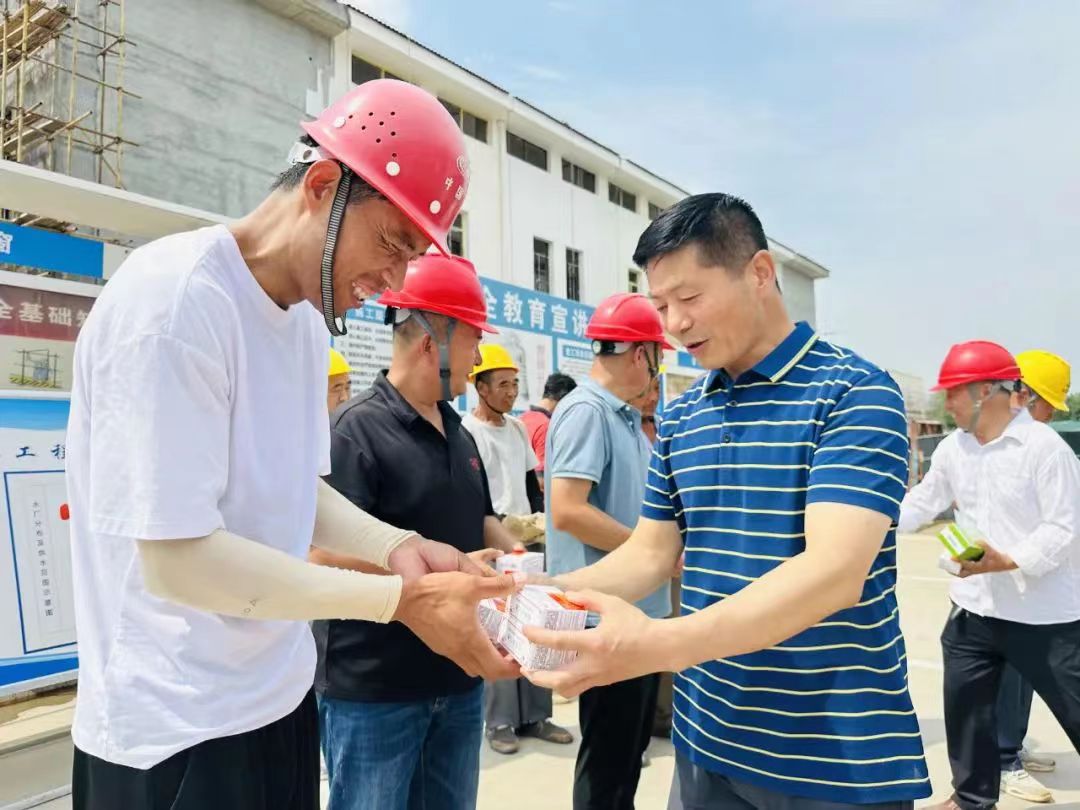 蹲点组为一线工人送去了矿泉水、藿香正气水、绿豆等降温防暑礼包。杜建新表示,第一水厂的建设关系民生,早日供水就能早日解决供水难问题,广大一线职工辛勤劳动,奋战在户外一线,不惧“烤”验,他们用汗水和奉献诠释爱岗敬业,叮嘱大家在认真工作的同时要注意高温防护、保重身体。