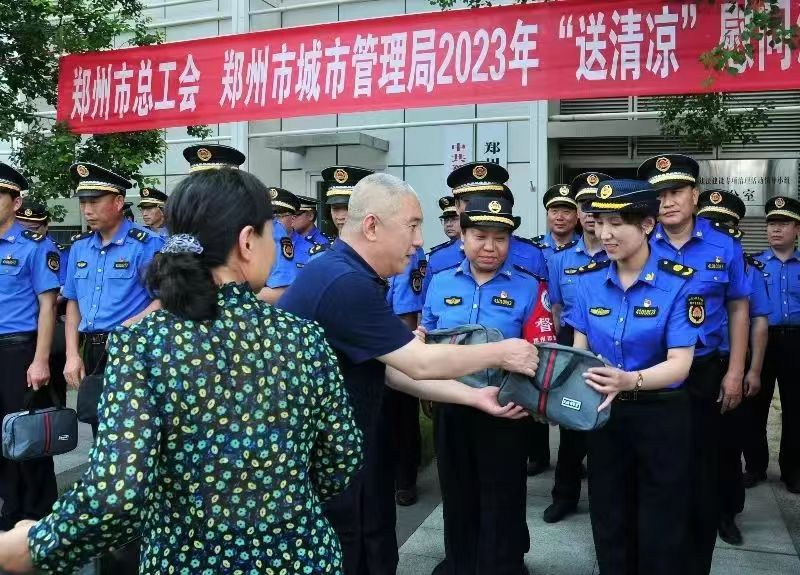 8月2日下午,郑州市总工会慰问组深入户外工作现场,看望慰问高温下坚守岗位的一线劳动者,为他们送去防暑降温用品。郑州市总工会党组成员、经费审查委员会主任张竹人,市总工会四级调研员胡忠和带领市总基层工作部、市农业交通建设工会有关负责人参加慰问。