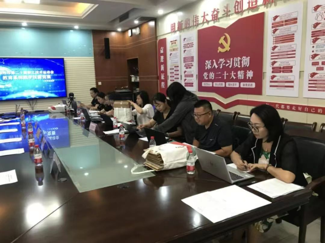 本届技能竞赛共设高校文科、高中数学、高中英语、初中语文、初中物理、电教系统初中思想政治等6个科目,通过各学校预赛,全市共373名教师进入市级决赛,今年的教学竞赛评审首次引入专业化评审平台,各评委老师通过线上平台进行评审,在提高评审过程效率的同时,进一步强化了评审结果的公平公正。