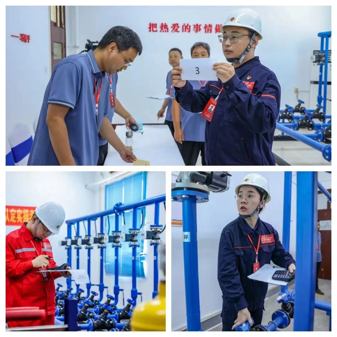理论考试现场,裁判员严肃认真监考,选手们凝神聚气,全神贯注答题。实操考试现场,参赛选手随机抽取考题,调整循环泵频率、认真计算流量、快速调节阀门,每一步都争分夺秒,动作娴熟,充分展现出热力职工扎实的技能操作水平。
