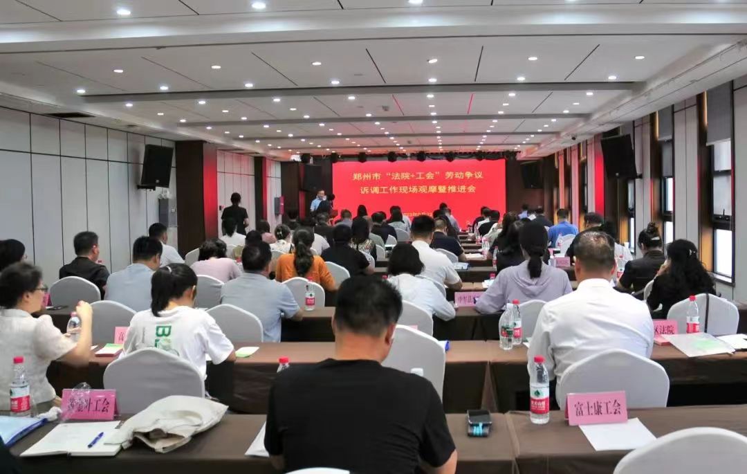为进一步推进郑州市劳动争议诉调对接机制建设与能力建设,会议要求各级工会聚焦主责主业,通过建立“法院+工会”工作对接机制,工会组织深度参与纠纷调解,充分发挥桥梁纽带功能,助力法院有效化解劳动争议,拓展工会法律服务内容、延伸工会法律服务触角,让维权服务更贴心、更温暖、更精准、效率更高。按照部署,郑州市各级法院和工会将把构建“法院+工会”劳动争议多元化解工作机制作为落实“党建带工建 助力经济提速提质”专项行动工作部署的重要措施,纳入重要工作议事日程,调动一切可以调动的力量,从场地、资金、调解队伍、工作机制等方面加强统筹,打通诉调工作中的难点堵点,推进劳动争议诉前调解工作高效运行,努力打造“法院+工会”维权新模式,为维护劳动者合法权益提供更低门槛、更少诉累、更多保障的法律服务,让职工群众感受到工会“娘家人”的温暖,感受到法律庇护下的获得感、幸福感、安全感,努力形成一大批亮点经验做法,为全省推进劳动争议多元化解工作提供更多郑州案例、郑州经验。
