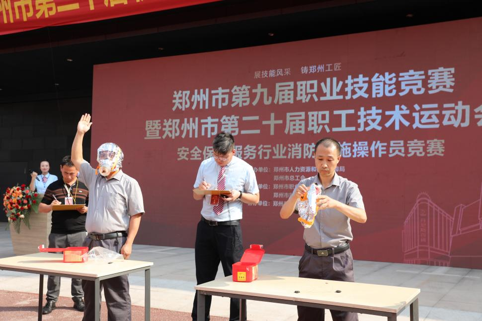 9月7日,郑州市第九届职业技能竞赛暨郑州市第二十届职工技术运动会安全保护服务行业消防设施操作员竞赛在丹尼斯大卫城北广场开赛。本次竞赛由郑州市人力资源和社会保障局、郑州市总工会主办,郑州市职业技能鉴定评价中心、郑州市财贸轻工服务业工会承办,郑州丹尼斯百货有限公司协办。郑州市总工会党组成员、副主席杜建新,郑州市人力资源和社会保障局四级调研员董少华,郑州技师学院副院长罗荣,丹尼斯集团执行副总经理林士钦出席开幕式。