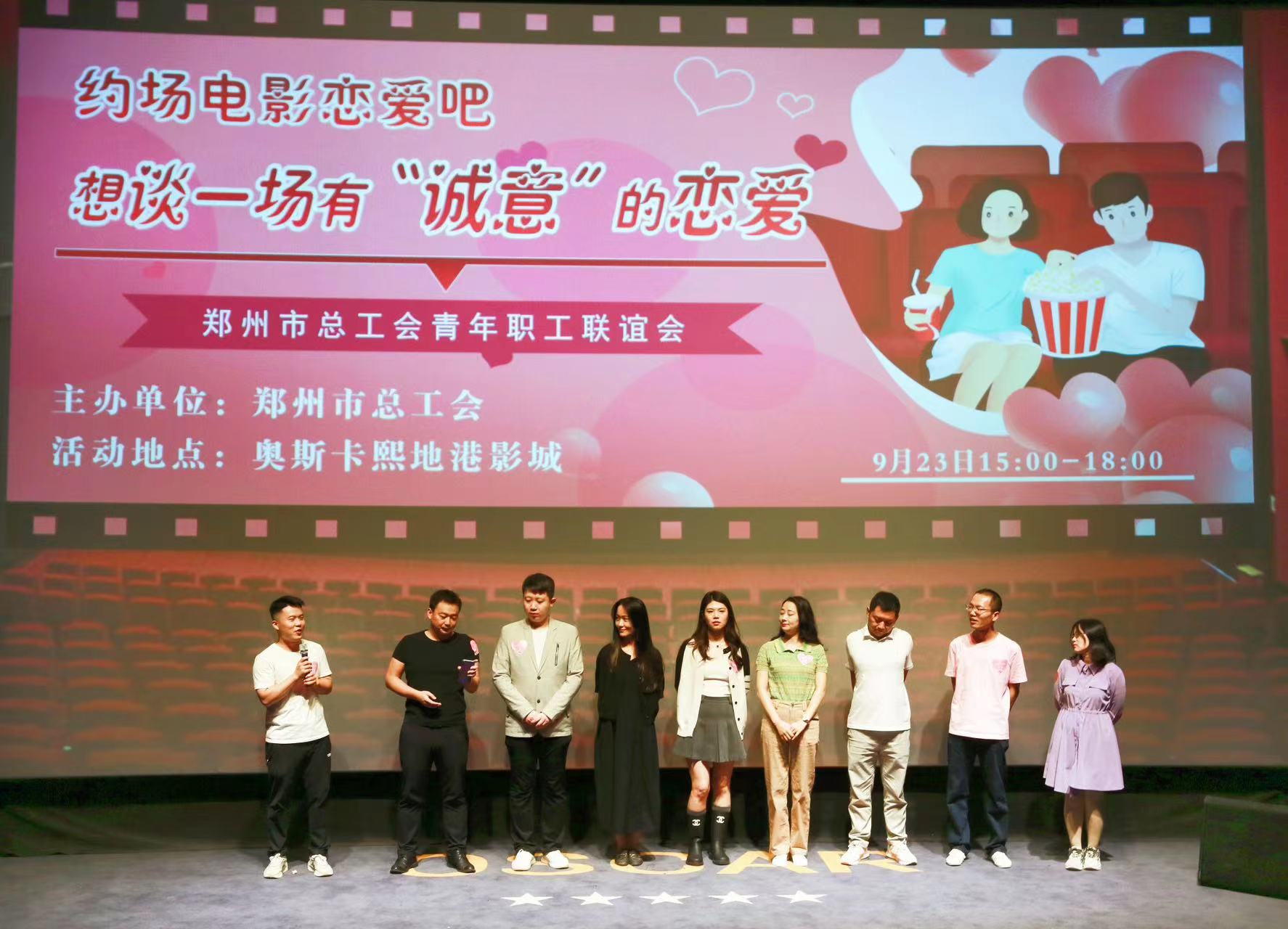 秋叶漫漫,桂子飘香。9月23日下午,由郑州市总工会举办的“约场电影恋爱吧”郑州市青年职工联谊活动在熙地港影城举办。来自郑州市企事业单位的60名单身职工参与了本次联谊活动。