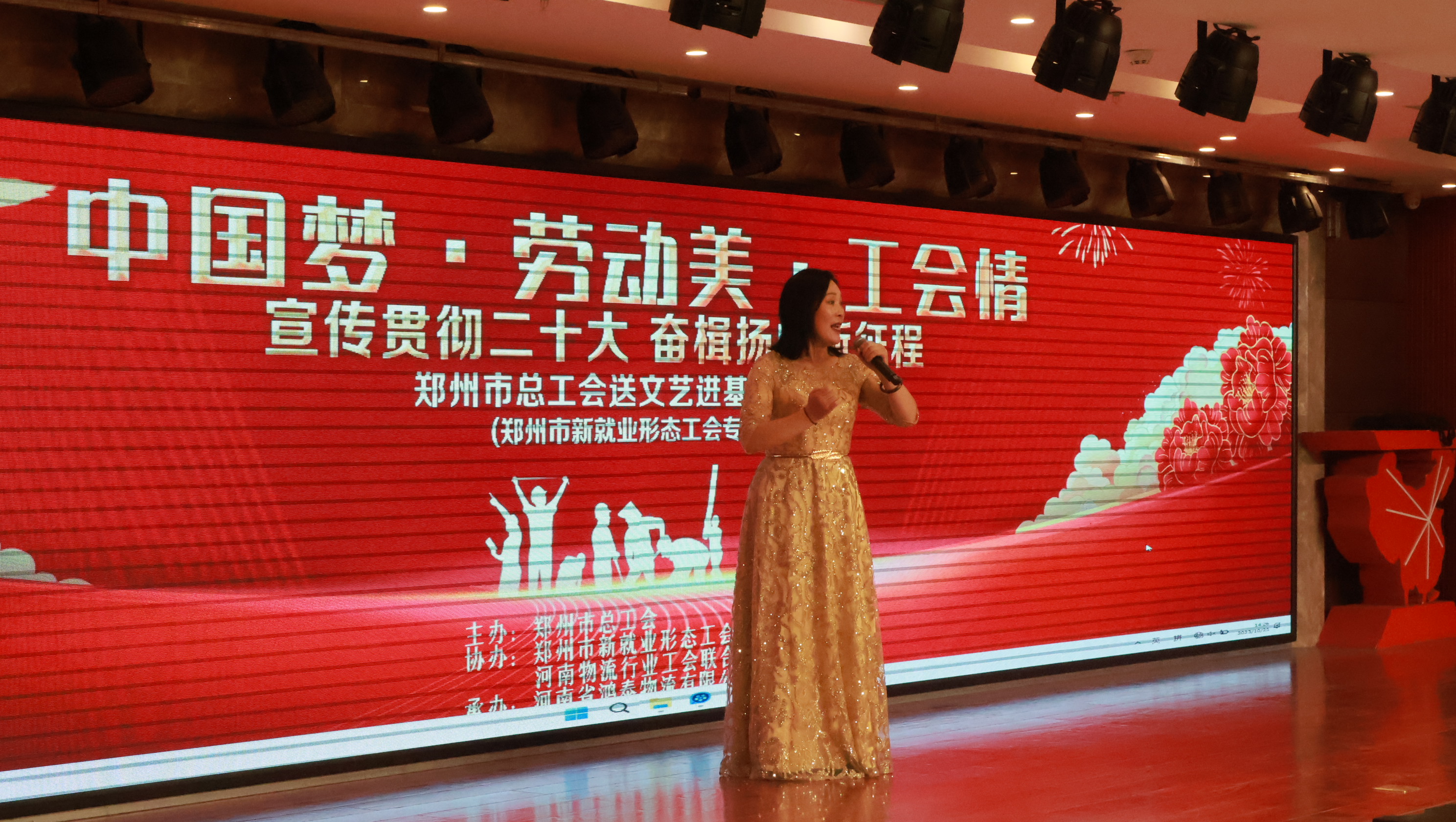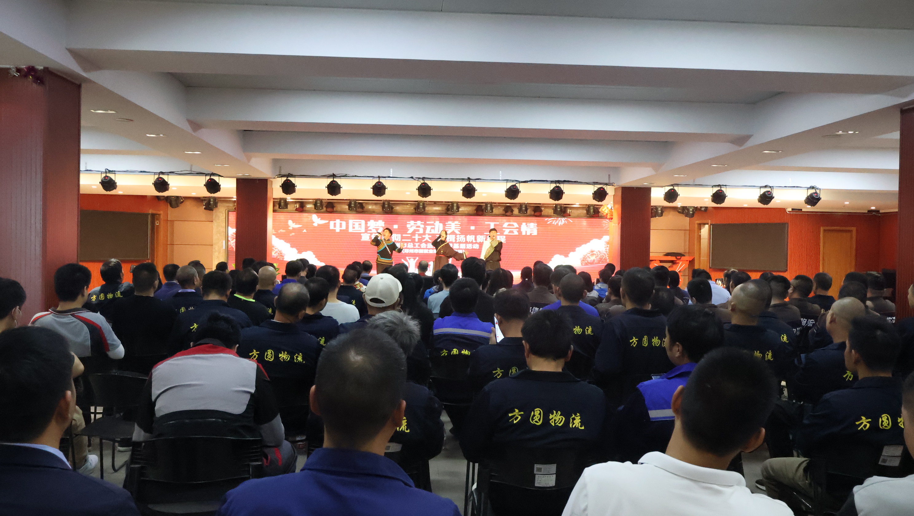 10月25日下午,“中国梦·劳动美·工会情——宣传贯彻二十大 奋楫扬帆新征程”郑州市总工会送文艺进基层活动走进河南省鸿泰物流有限公司。来自鸿泰物流、巨洋方圆物流、顺丰速运、德邦物流、诚信物流、万里物流等企业的上百名物流一线劳动者共同观看演出。