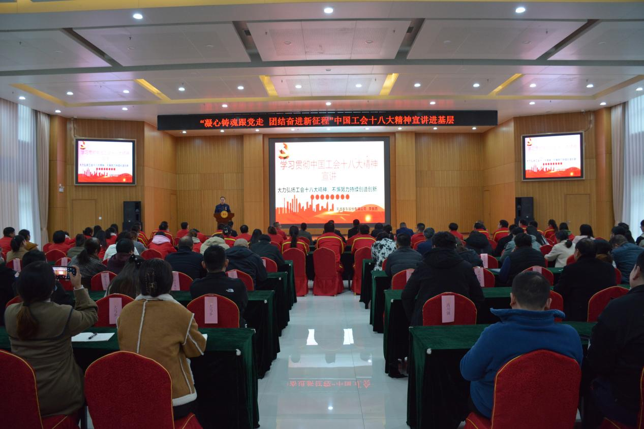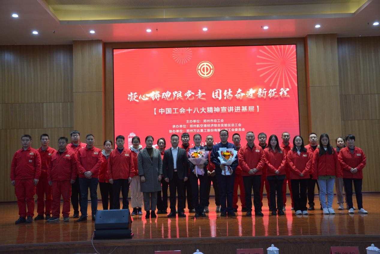 为推动中国工会十八大精神走向基层、走进企业、走近职工,11月10日下午,由郑州市总工会主办,郑州航空港区总工会承办的“凝心铸魂跟党走·团结奋进新征程”中国工会十八大精神宣讲进基层活动在郑州万达重工股份有限公司举办。郑州市总工会党组成员、二级调研员季文甫出席活动并带头宣讲。