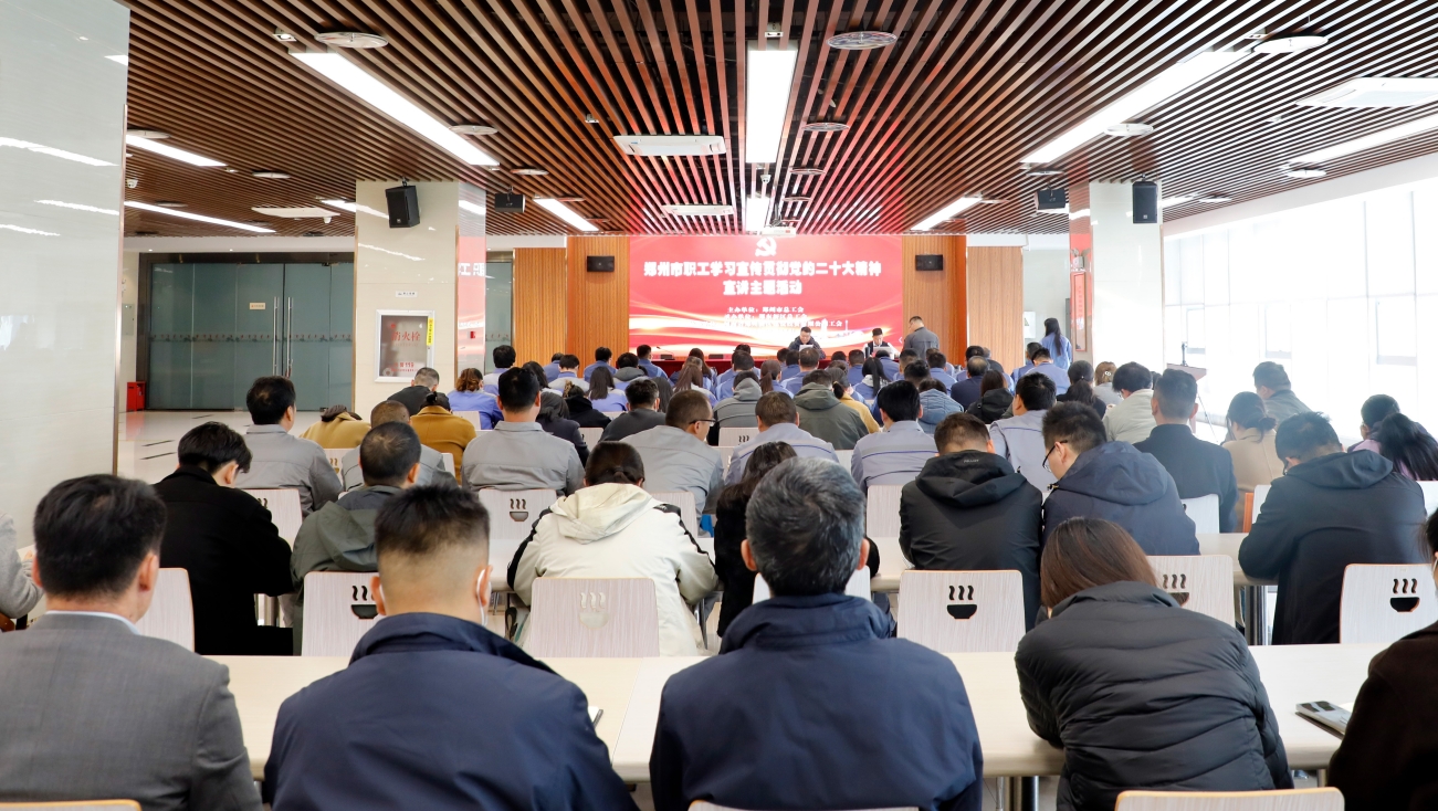 11月14日,“凝心铸魂跟党走 团结奋进新征程”郑州市职工学习宣传贯彻党的二十大精神主题宣讲团走进河南省郑州新区建设投资有限公司。来自郑东新区企业一线的150余名职工参加活动。