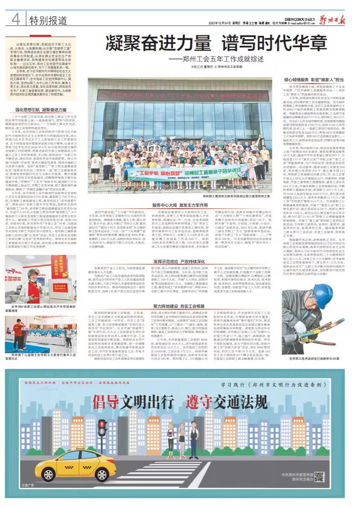 从强化思想引领,到掀起百万职工大比武、大练兵、大竞赛热潮;从开展“党建带工建”专项行动,到推进各类企业建立健全集体协商和集体合同制度;从深化群众性安全生产和职业健康活动,到构建常态化梯度帮扶长效机制……过去五年,郑州工会在现代化国家中心城市建设新征程中,写下了浓墨重彩的一笔。