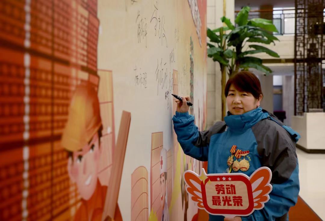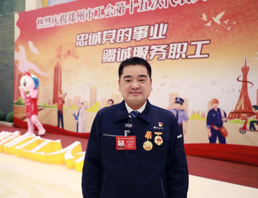 郑州工会十五大代表、恒天重工股份有限公司焊工班班长郭超,在打卡区“咱们工人有力量”展牌前驻足留念。他说:“作为一线产业工人,这句话让他感到特别亲切,这次大会是一个新起点,他将立足岗位,努力做一名有理想守信念、懂技术会创新、敢担当讲奉献的新时代产业工人,以实际行动为企业高质量发展作出贡献。”