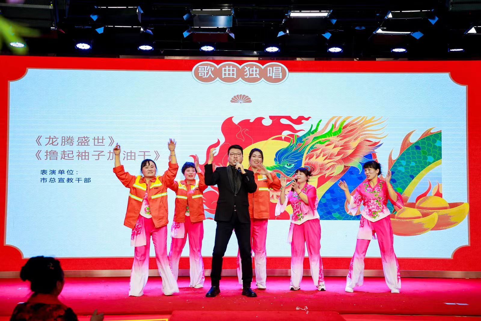 河南省餐饮与住宿行业协会选送的厨艺技能展示,大合唱《咱们工人有力量》,三句半《夸夸咱物业》等节目彰显了“劳动创造幸福”主题。市总工会宣教干部陈红松演唱的歌曲《龙腾盛世》《撸起袖子加油干》,郑州地铁集团文艺轻骑兵的歌伴舞《最美的担当》,朗诵《祖国,一首唱不完的恋歌》等节目将晚会推向了高潮。