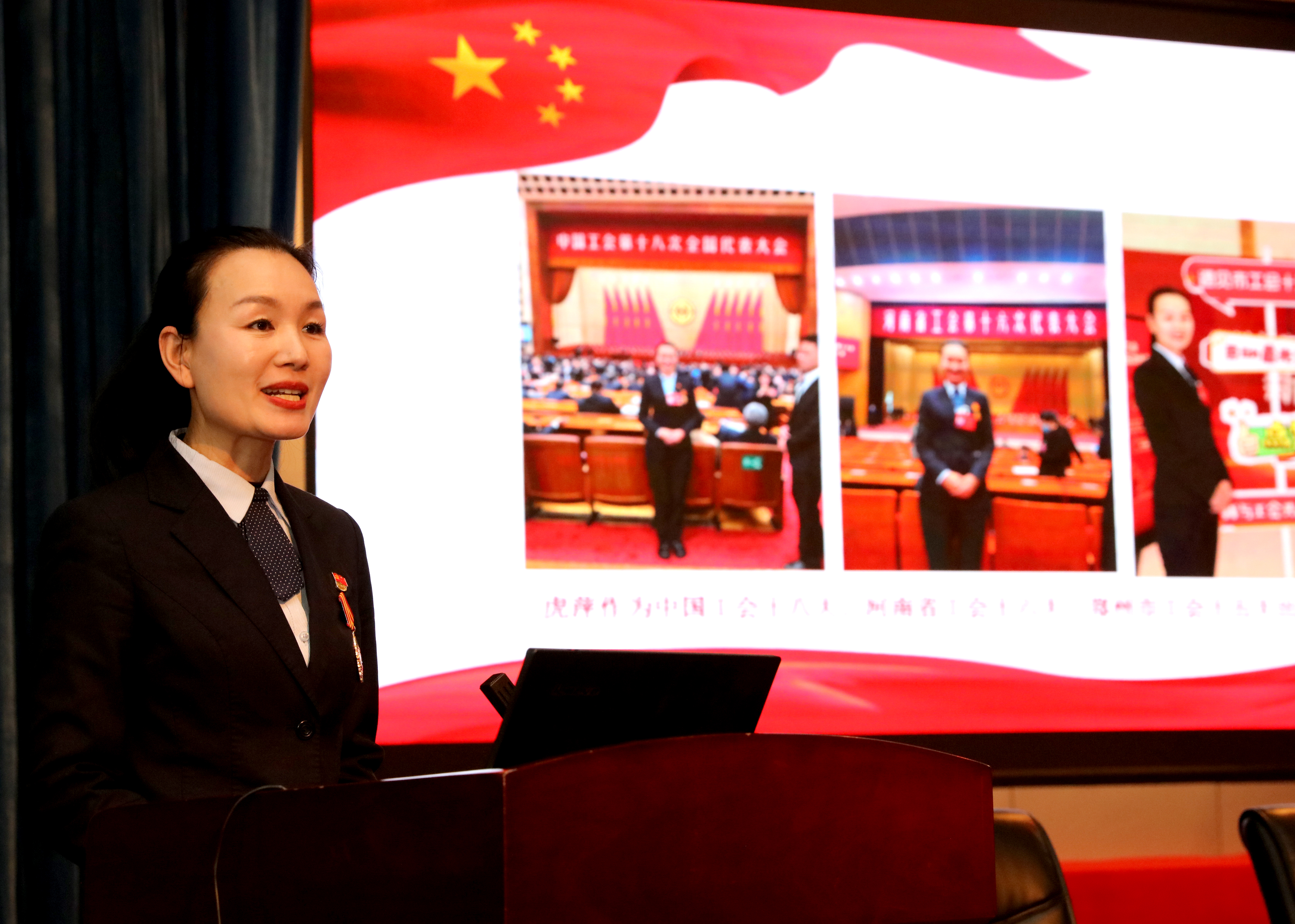 4位宣讲人结合各自工作实际和参与大会的切身体会,就如何学习宣传贯彻郑州市工会第十五次代表大会精神进行了深入解读,激励广大干部职工立足岗位、拼搏奋斗,在新时代新征程上勇于贡献力量。