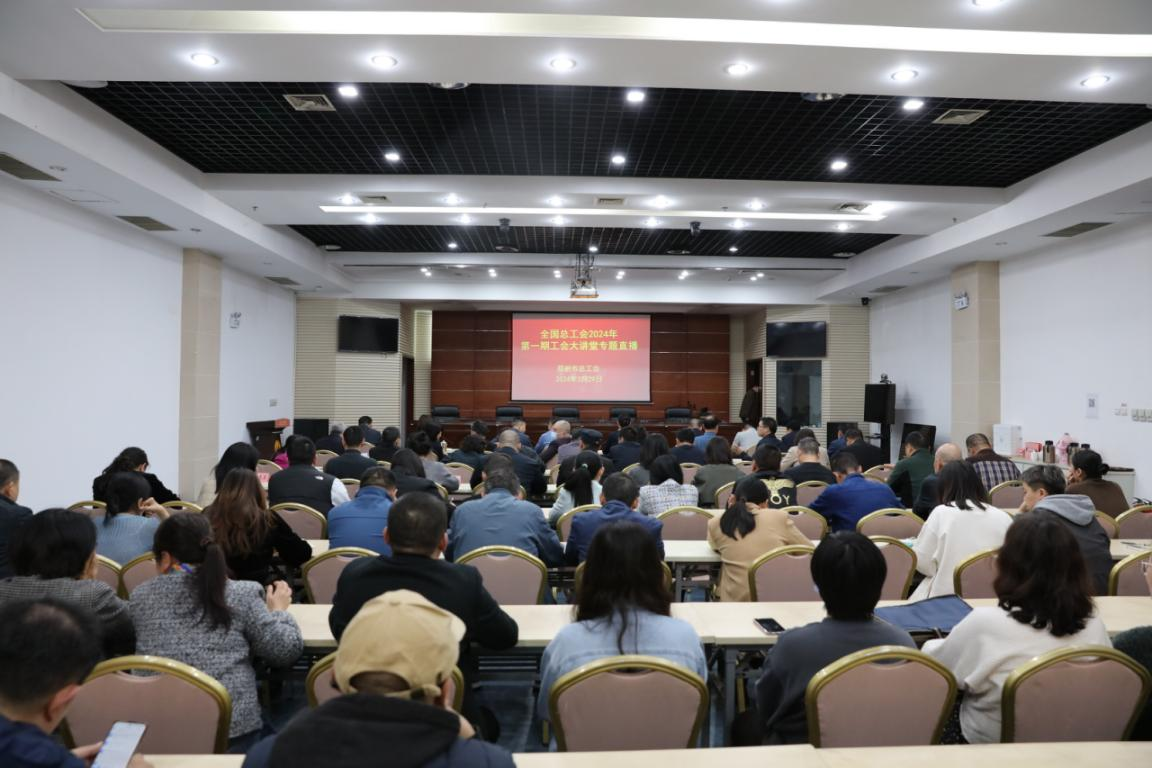 3月29日下午,全国总工会举办2024年第一期工会大讲堂专题直播活动。市总工会组织市总机关各部(处)室、市各产业工会和市职工服务中心全体人员进行集中收看。