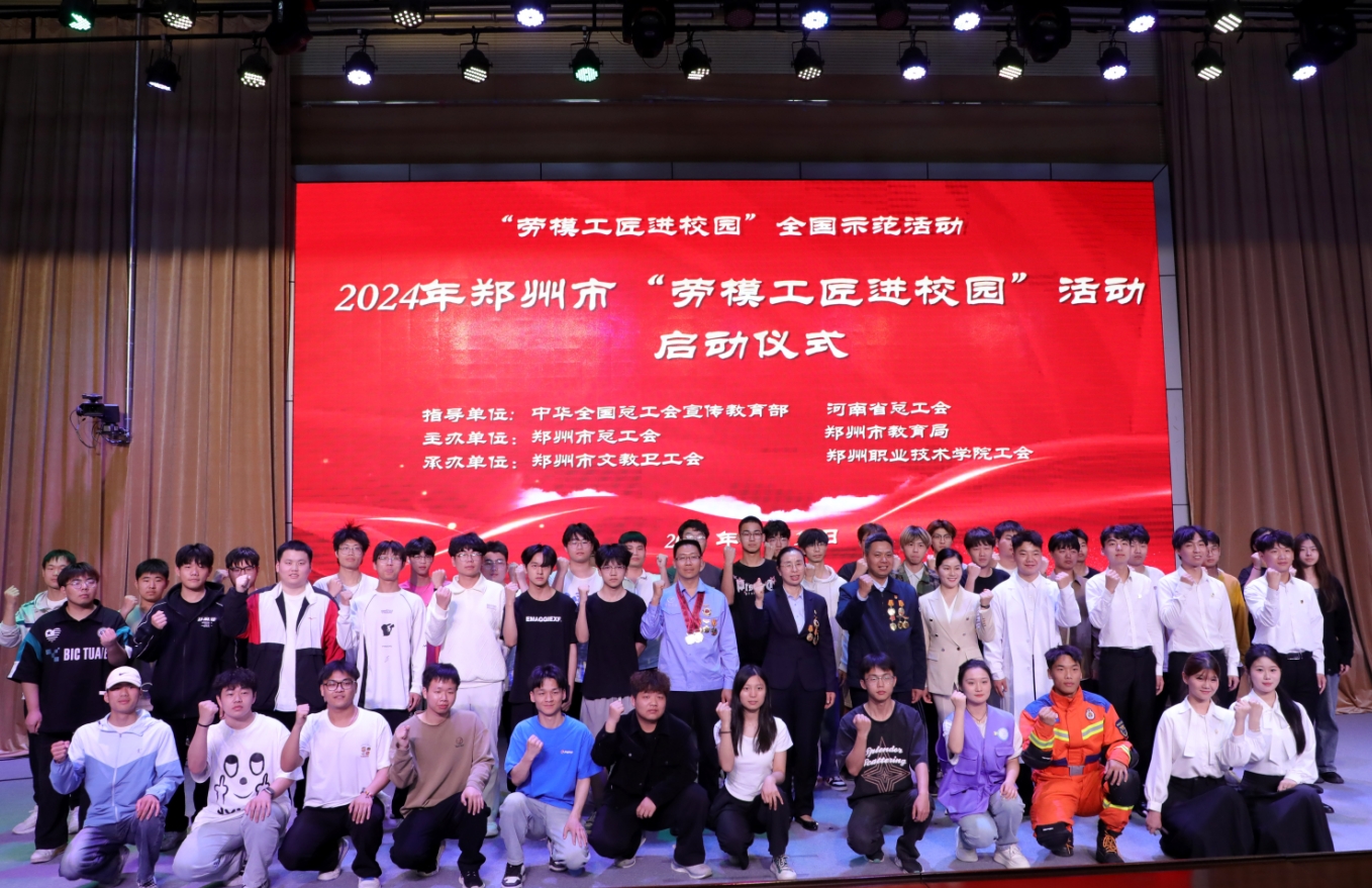 为深入贯彻习近平总书记关于大力弘扬劳模精神、劳动精神、工匠精神的重要指示精神,认真落实“人人持证、技能河南”建设要求,4月12日,郑州市2024年“劳模工匠进校园”活动启动仪式暨首场示范宣讲在郑州职业技术学院举行。4名劳模工匠代表走进校园,来到莘莘学子身边,现场分享他们奋斗成长经历和勇于挑战自我、勇攀技能高峰的劳动故事,激励大家走技能成才、技能报国之路。