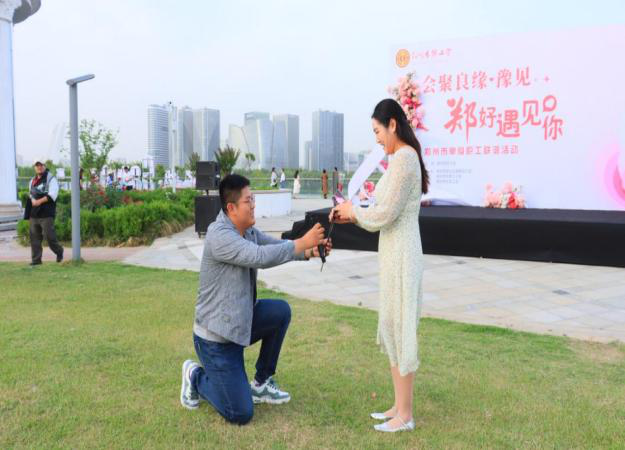 5月11日,“会聚良缘·豫见——郑好遇见你”郑州市单身职工联谊活动在郑东新区龙子湖滨水广场举行。这场别开生面的联谊活动,吸引了近300名单身职工参加,由邂逅到相识。