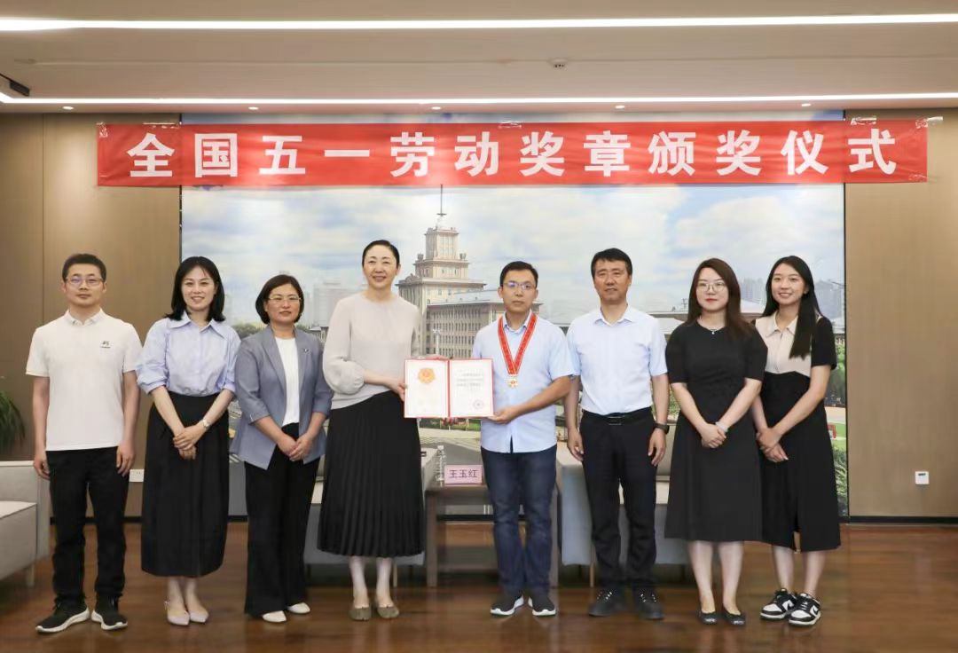 为大力弘扬劳模精神、劳动精神、工匠精神,表彰先进、树立典型,激励广大职工积极投身中国式现代化建设,5月31日下午,郑州市总工会党组书记、常务副主席王玉红,党组成员、副主席宋慧一行来到哈工大郑州研究院,为全国五一劳动奖章获得者、哈工大郑州研究院研究员范阳阳颁发奖章和证书。